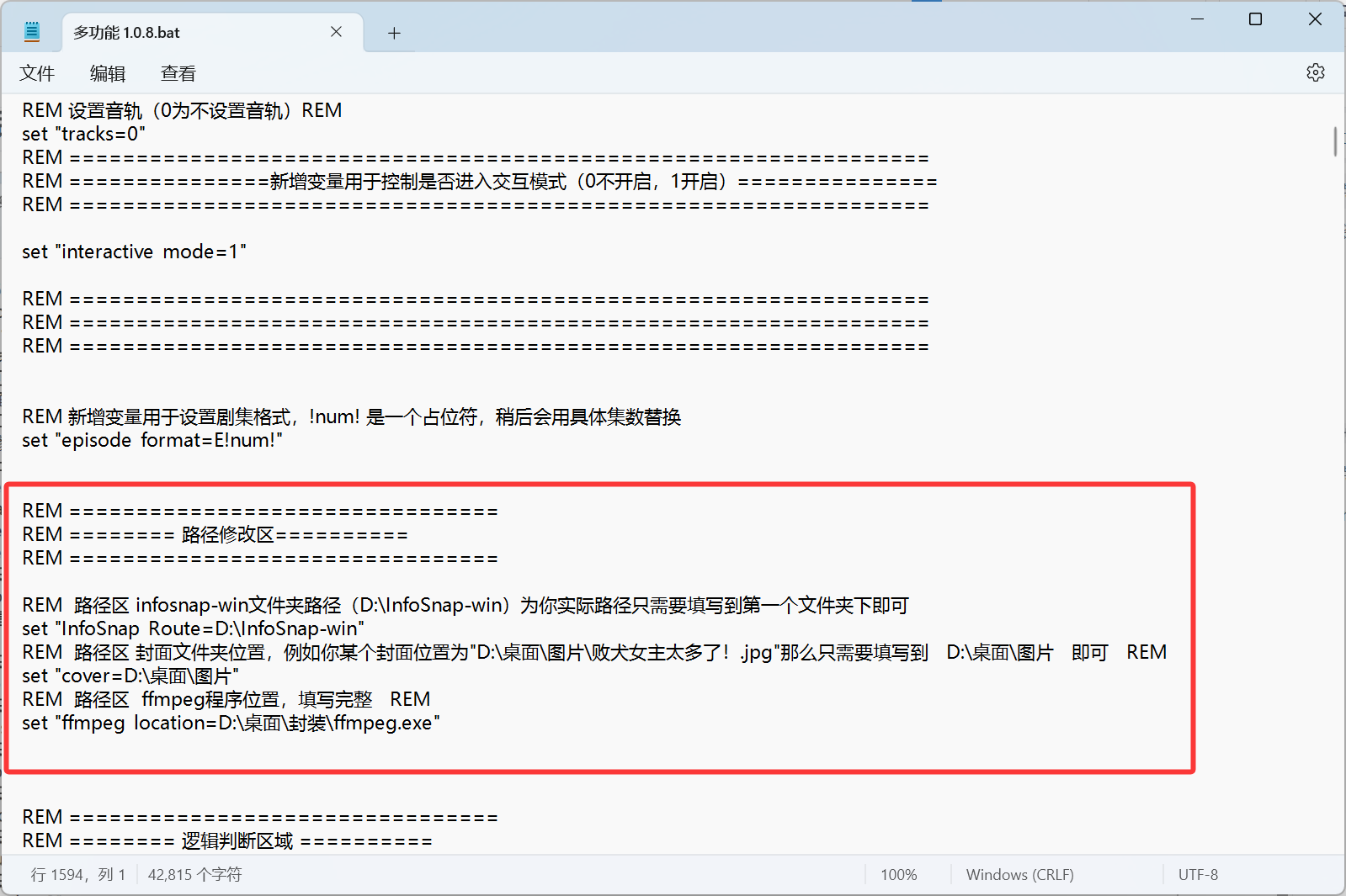 在InfoSnap安装好之后,右键多功能bat,在记事本中编辑