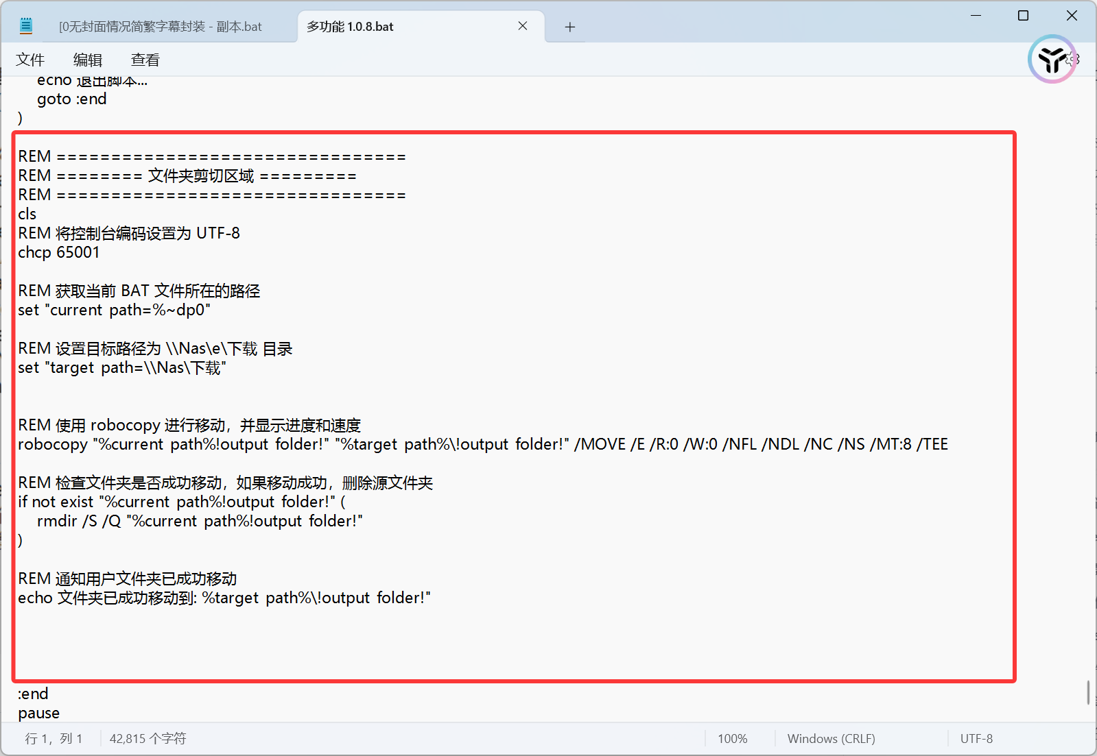 这个作用是移动封装好的视频和文件夹到对应位置,如果要修改