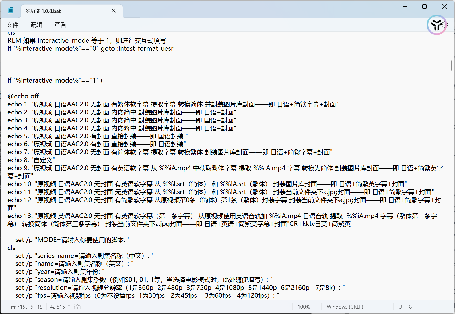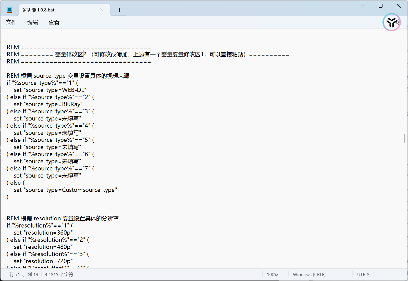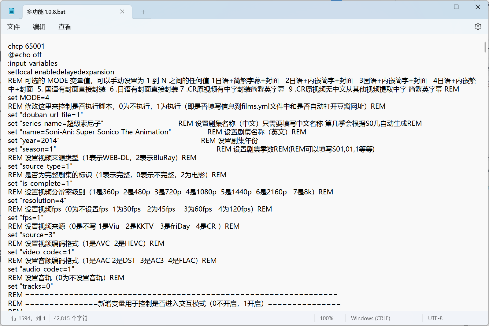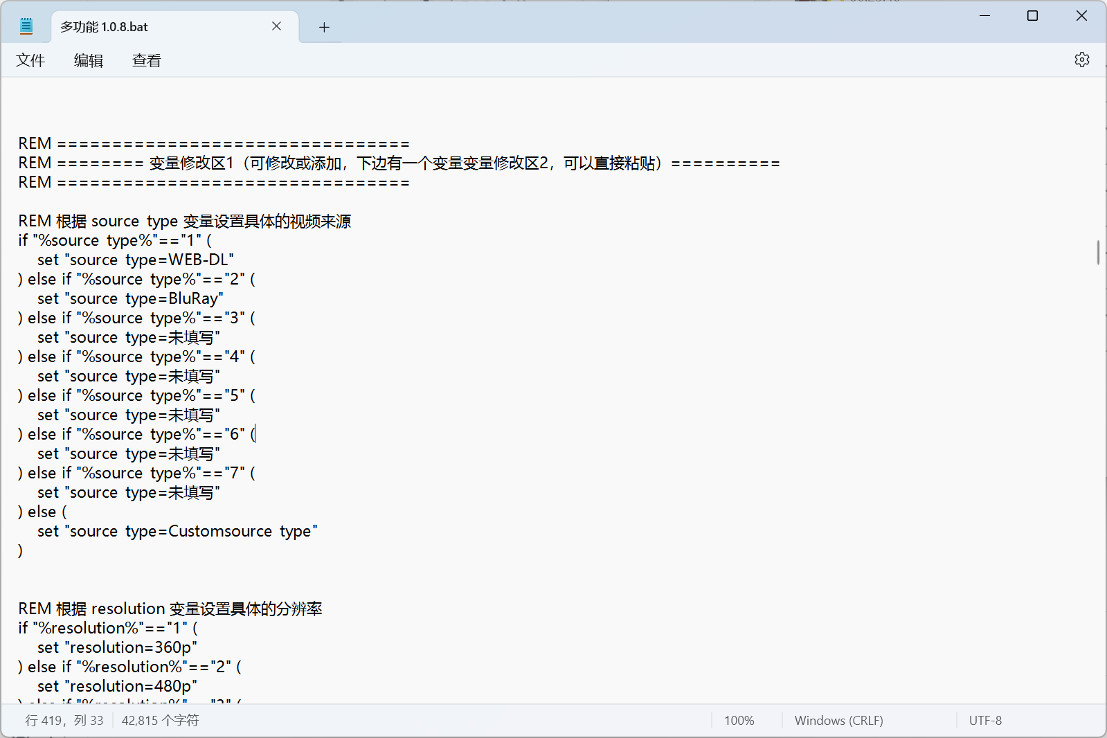 这个就是对应的,多功能bat里双击运行的,这个地方了,顺带一提,如果想要添加或者修改这个的描述可以在上边找到对应的内容,如下图2