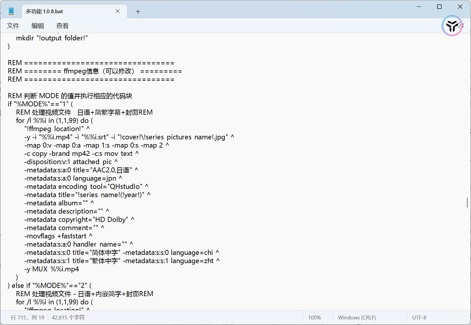 set "ffmpeg_location=D:\桌面\封装\ffmpeg.exe"