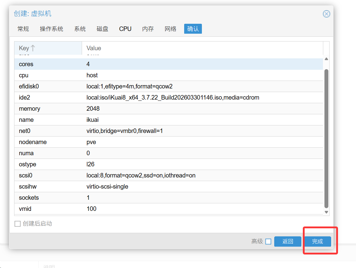 上传完成之后然后点击创建虚拟机,会得到如下图