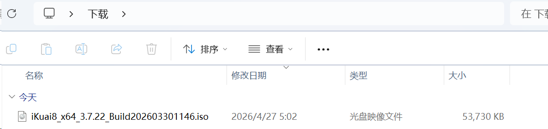 将刚刚下载的iKuai8_x64_3.7.22_Build202603301146.iso文件上传上去