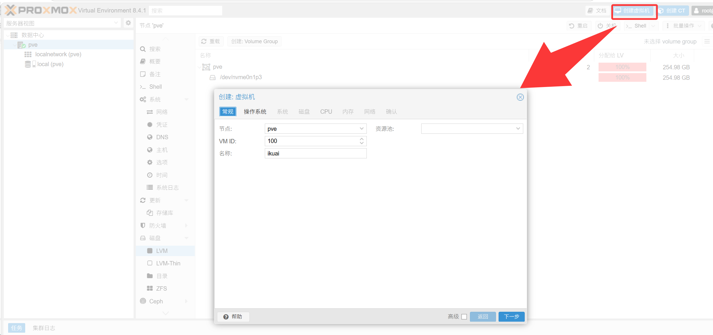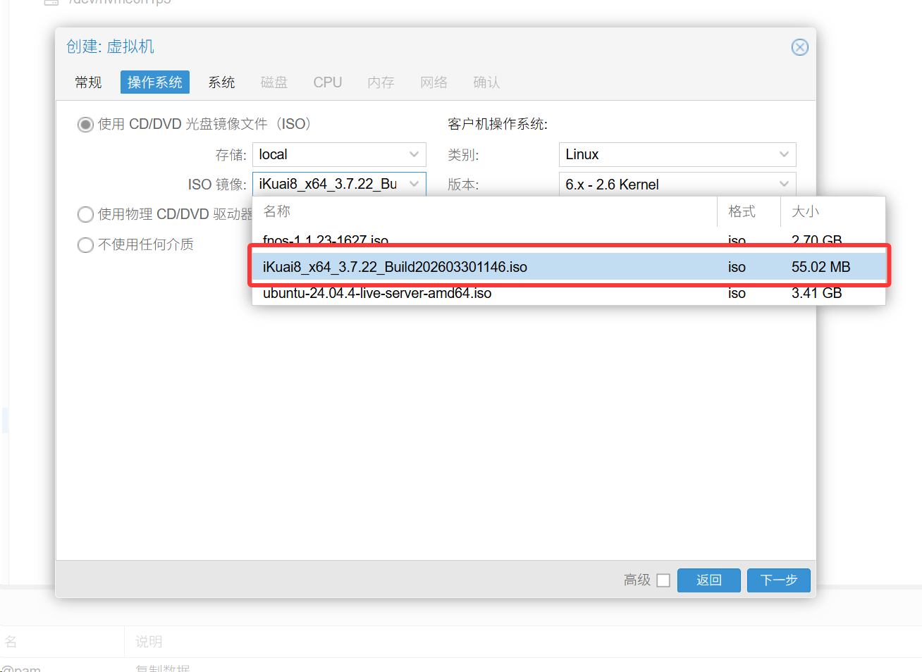 点击下一步——ISO选择你刚刚上传的那个ikuai镜像