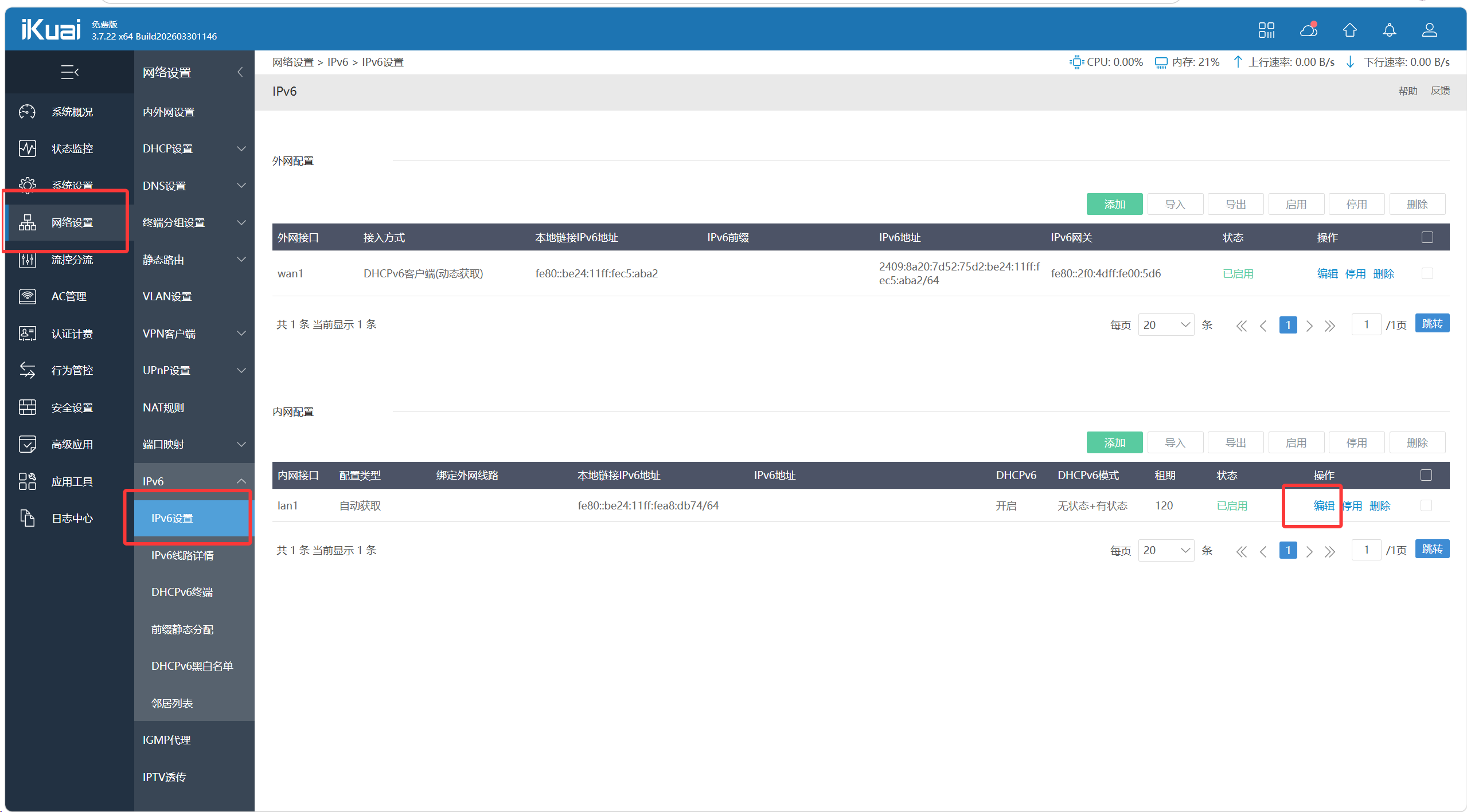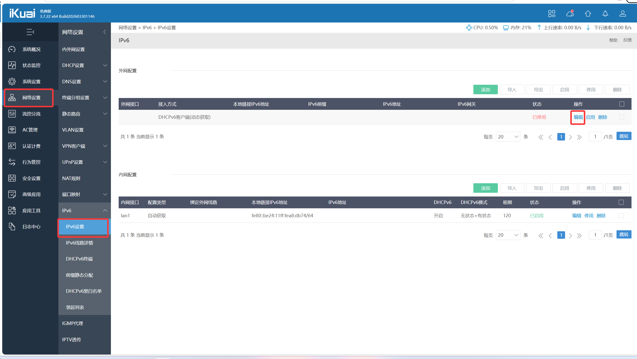 第三个ipv6的启用,如下图点击编辑