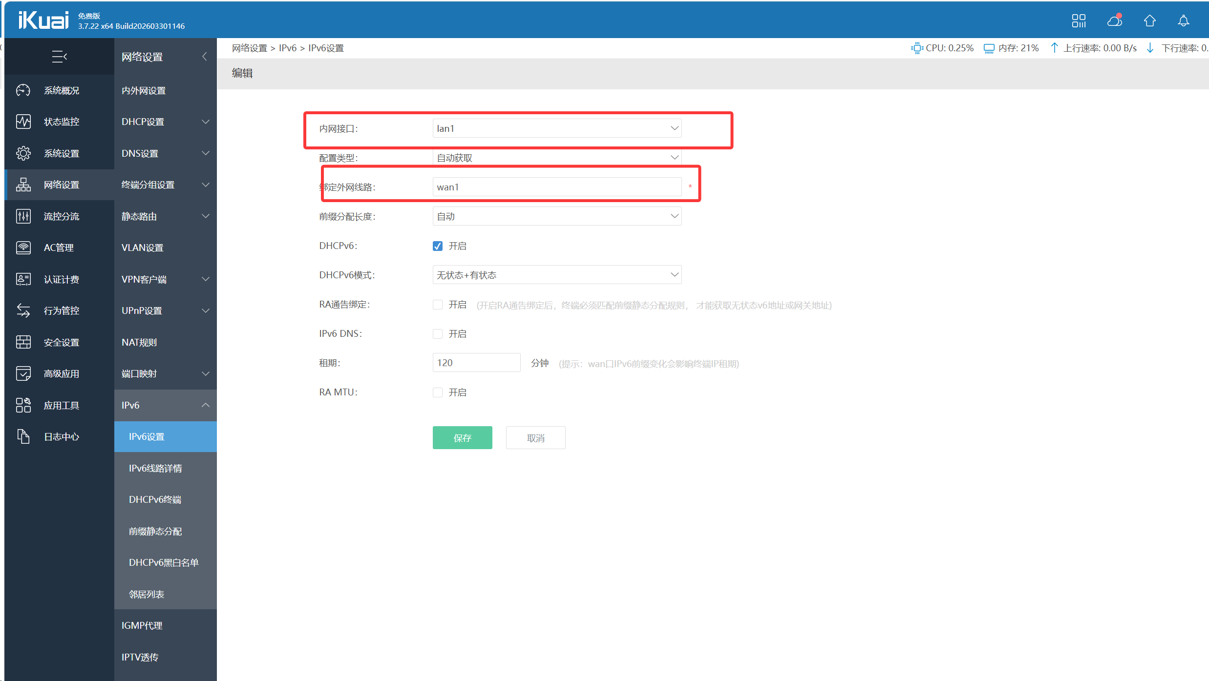 然后是ikuai的一些配置