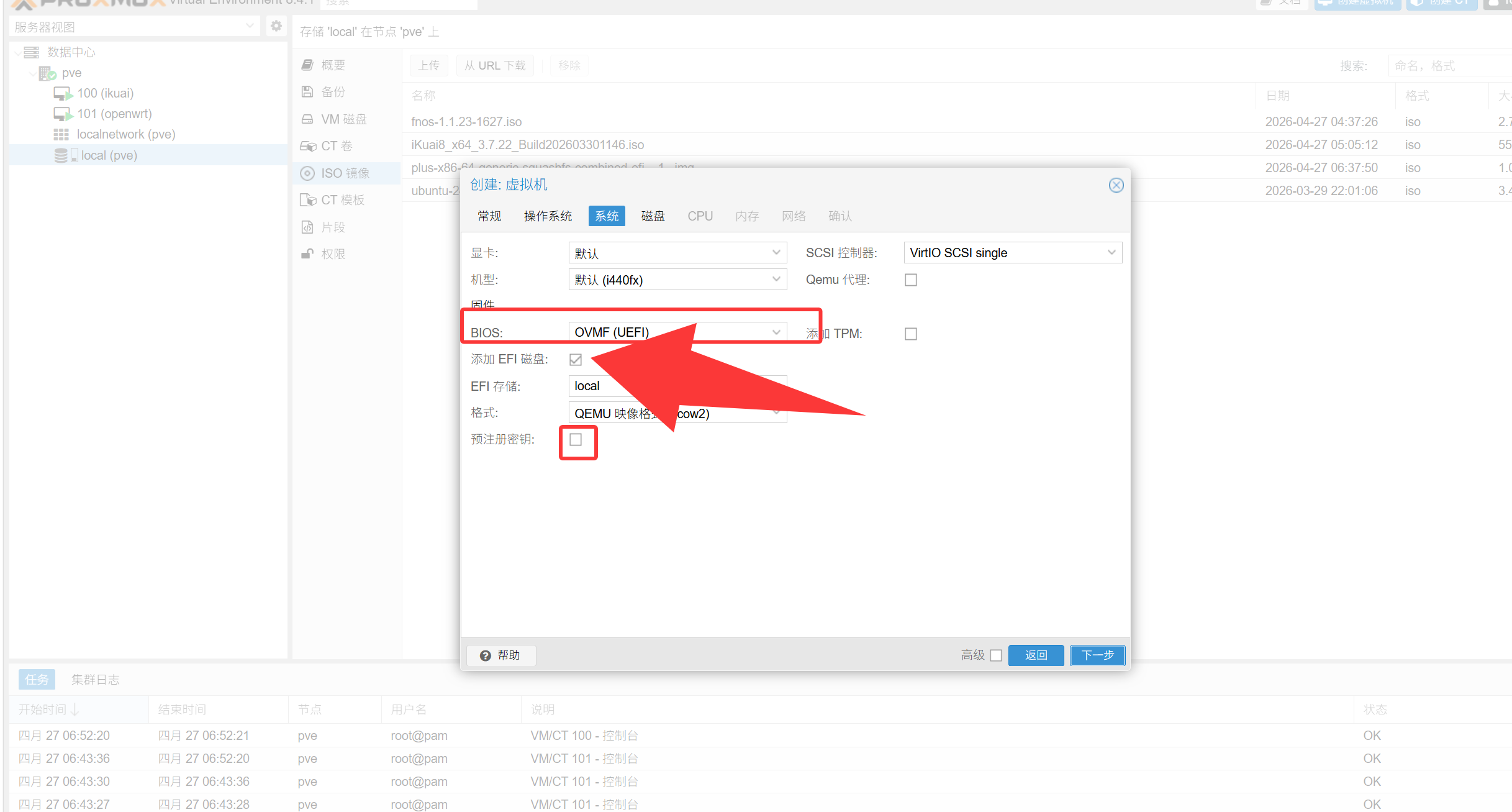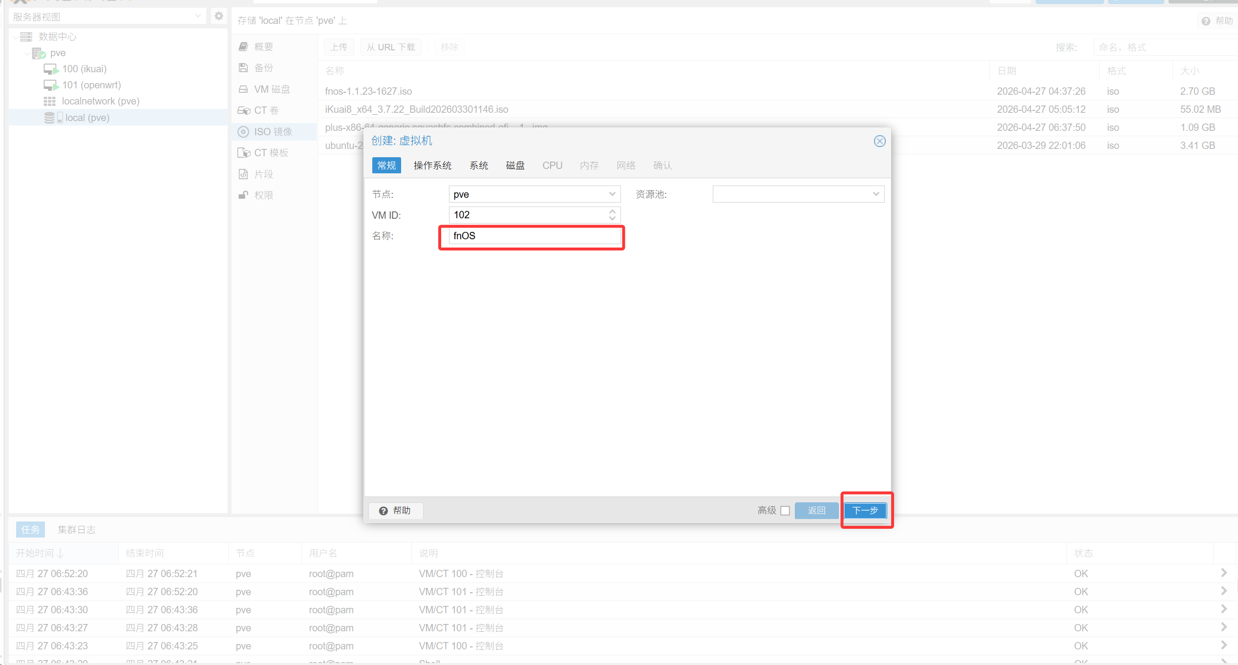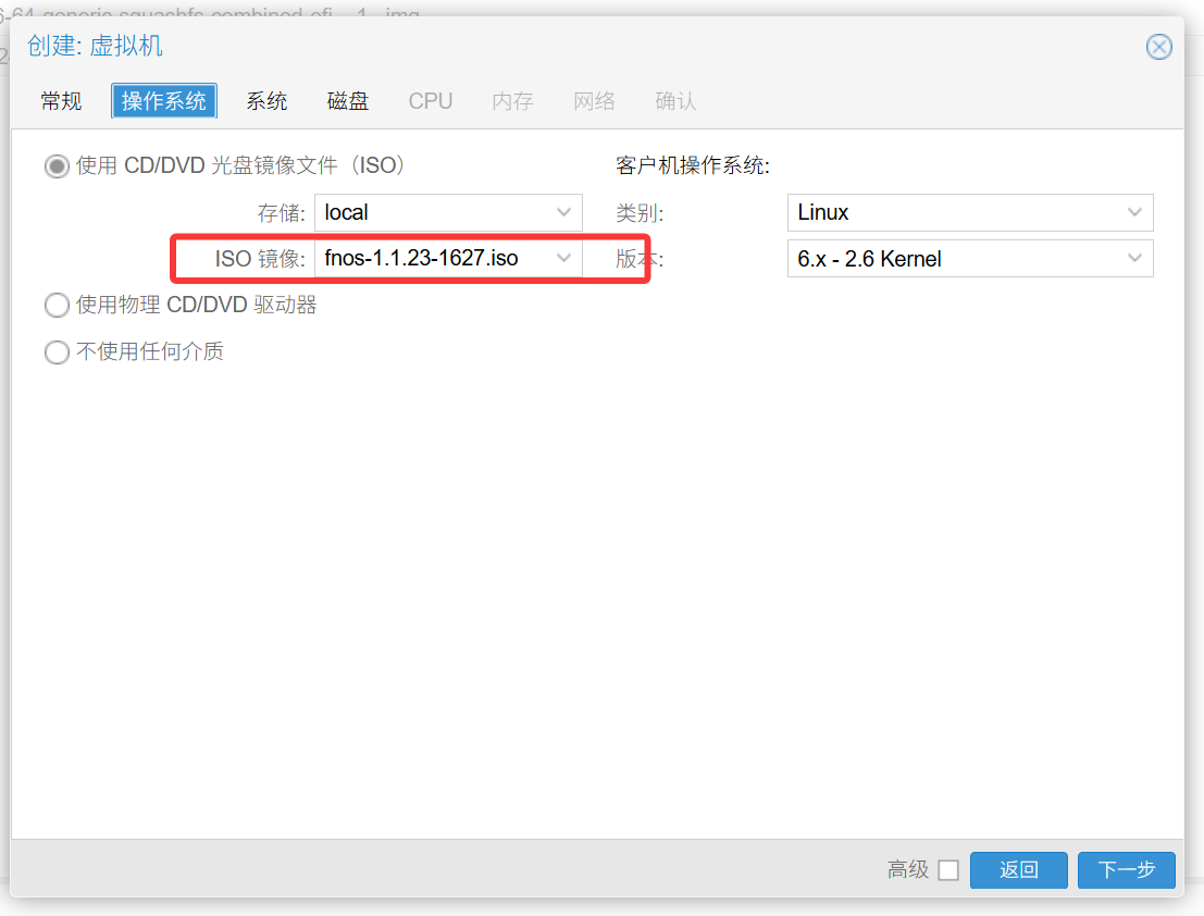 ISO选择你上传的飞牛镜像