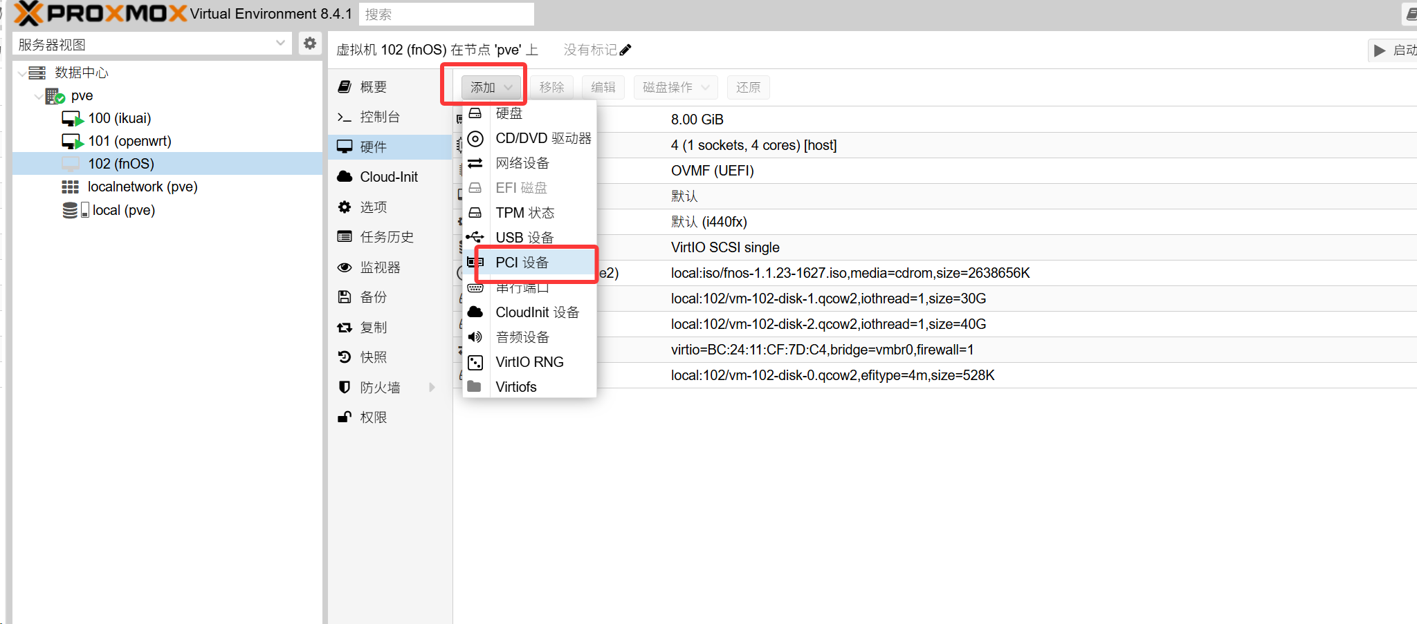 点击添加——pci设备