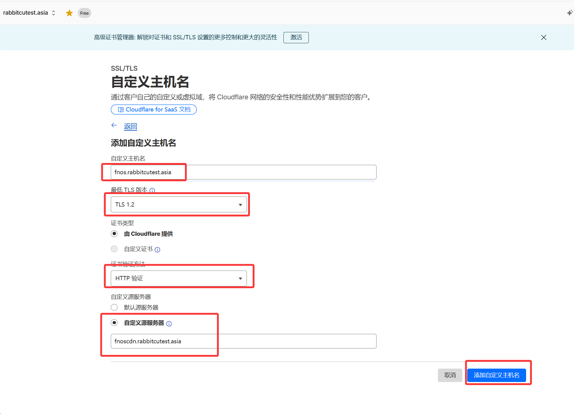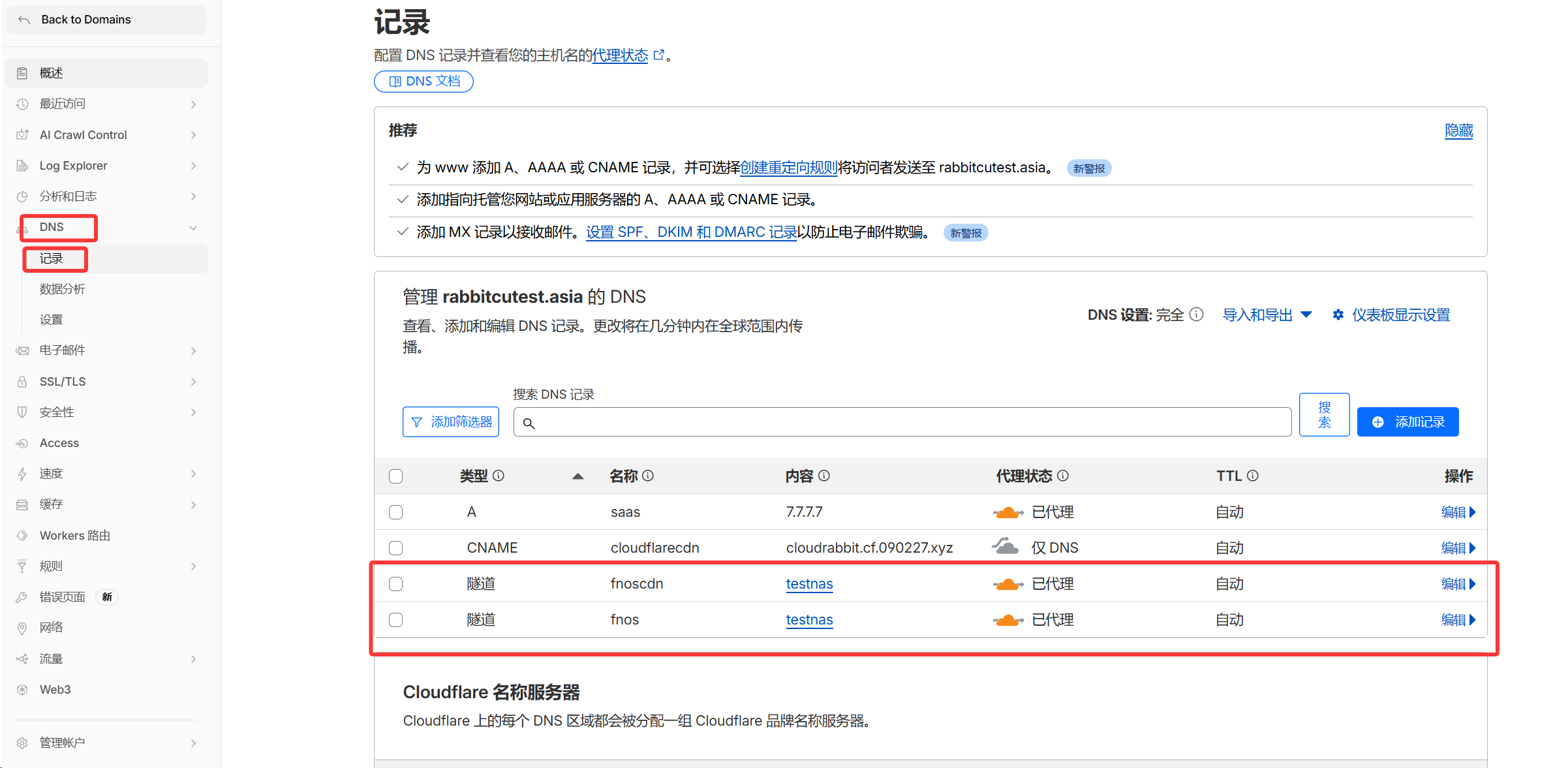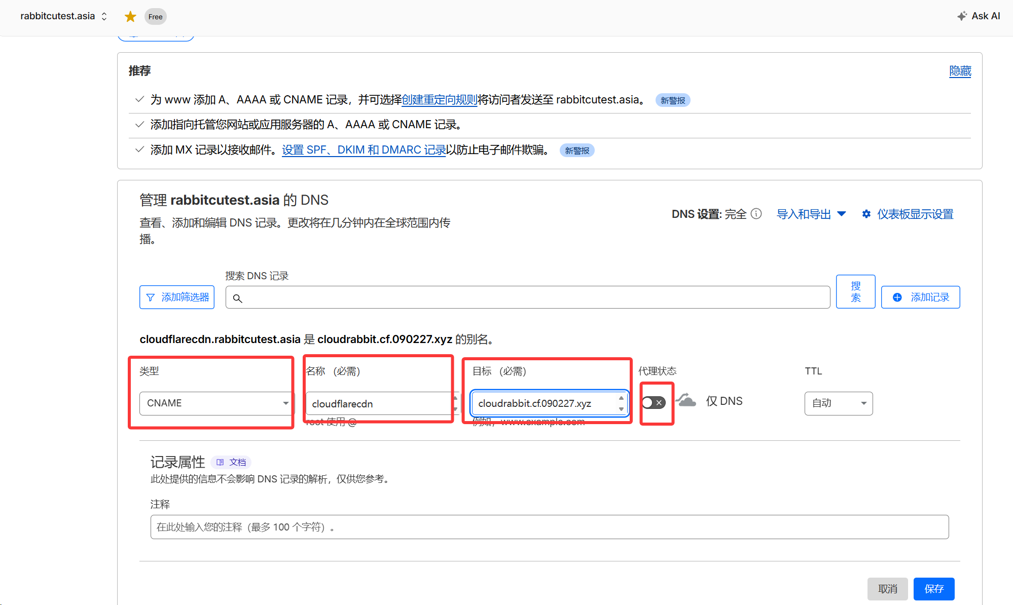 目标:cloudflarecdn.rabbitcutest.asia这个是你步骤二创建的那个CNAME