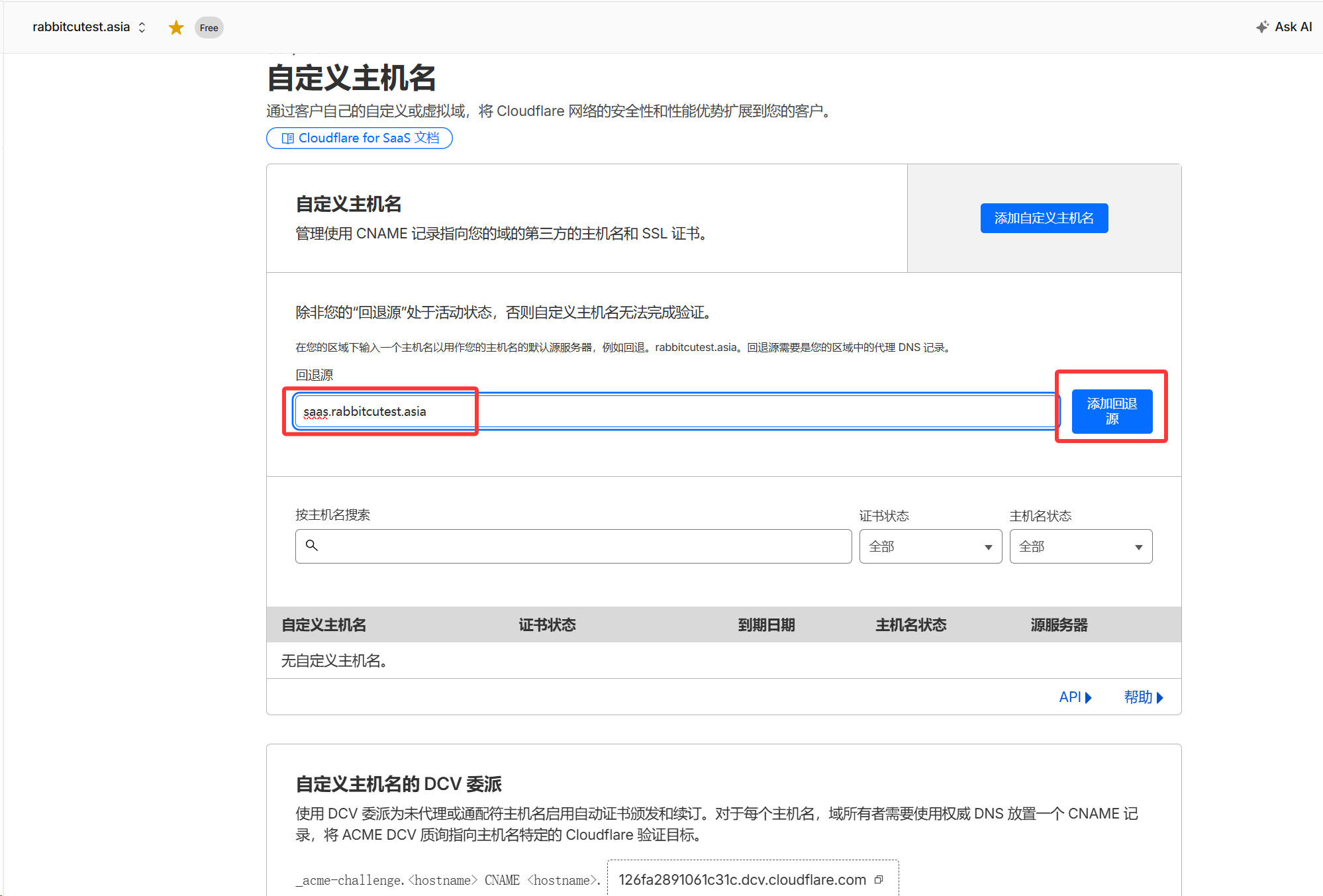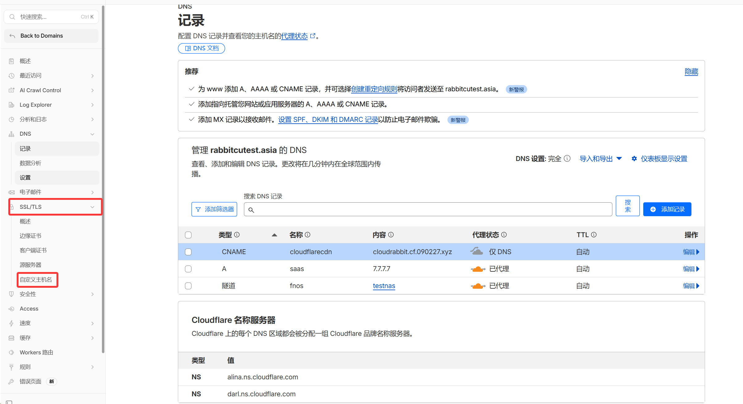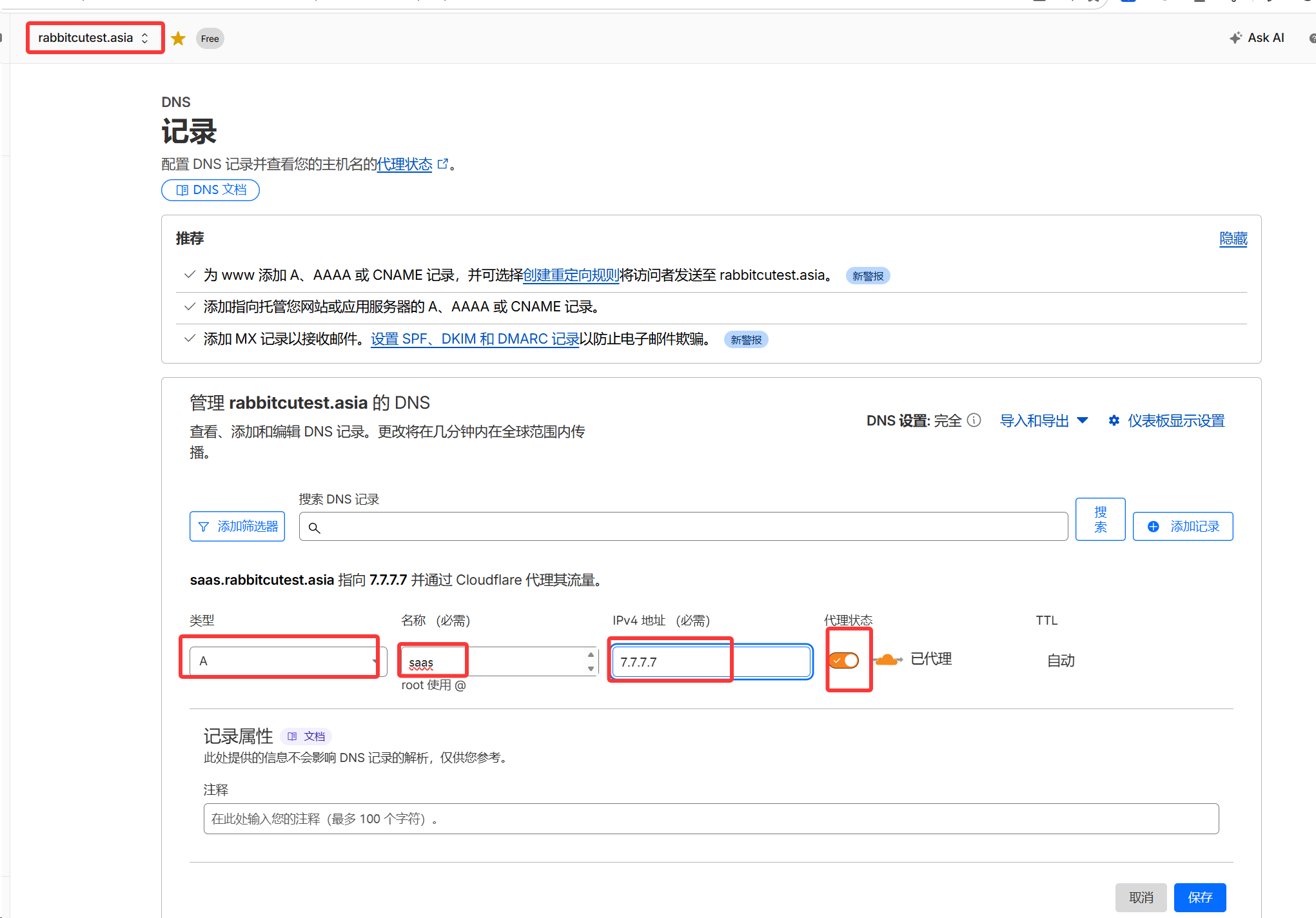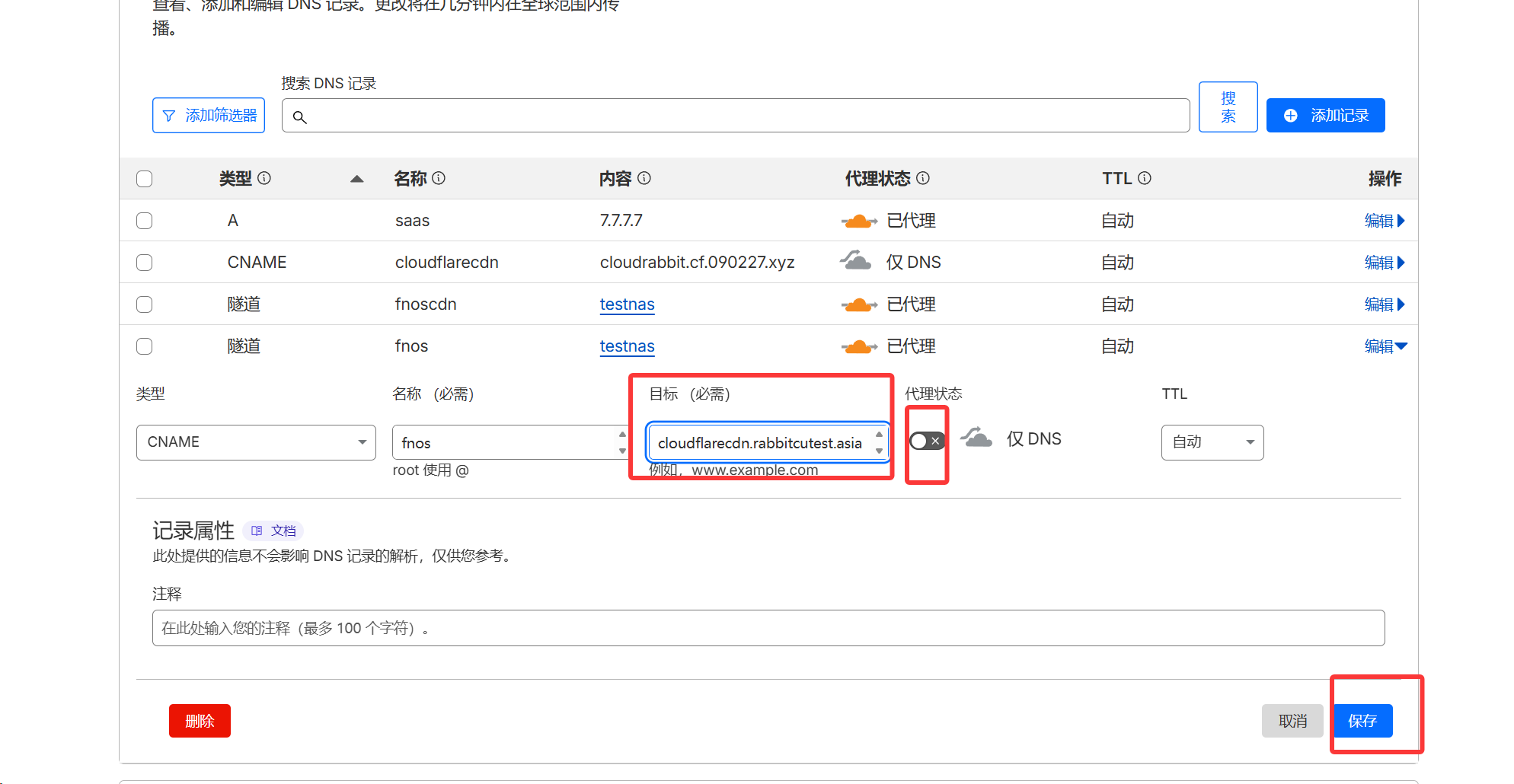 目标:cloudflarecdn.rabbitcutest.asia这个是你步骤二创建的那个CNAME