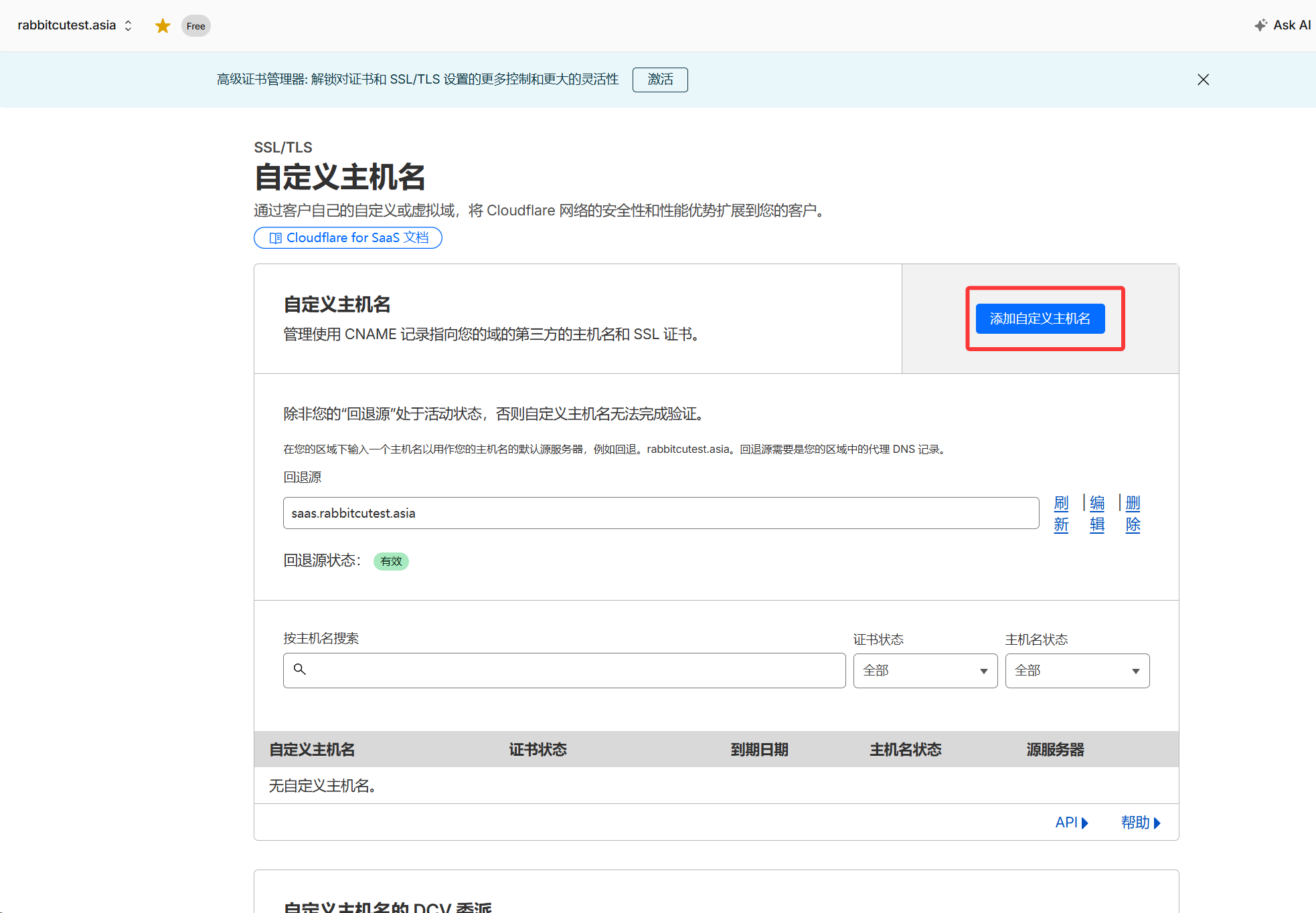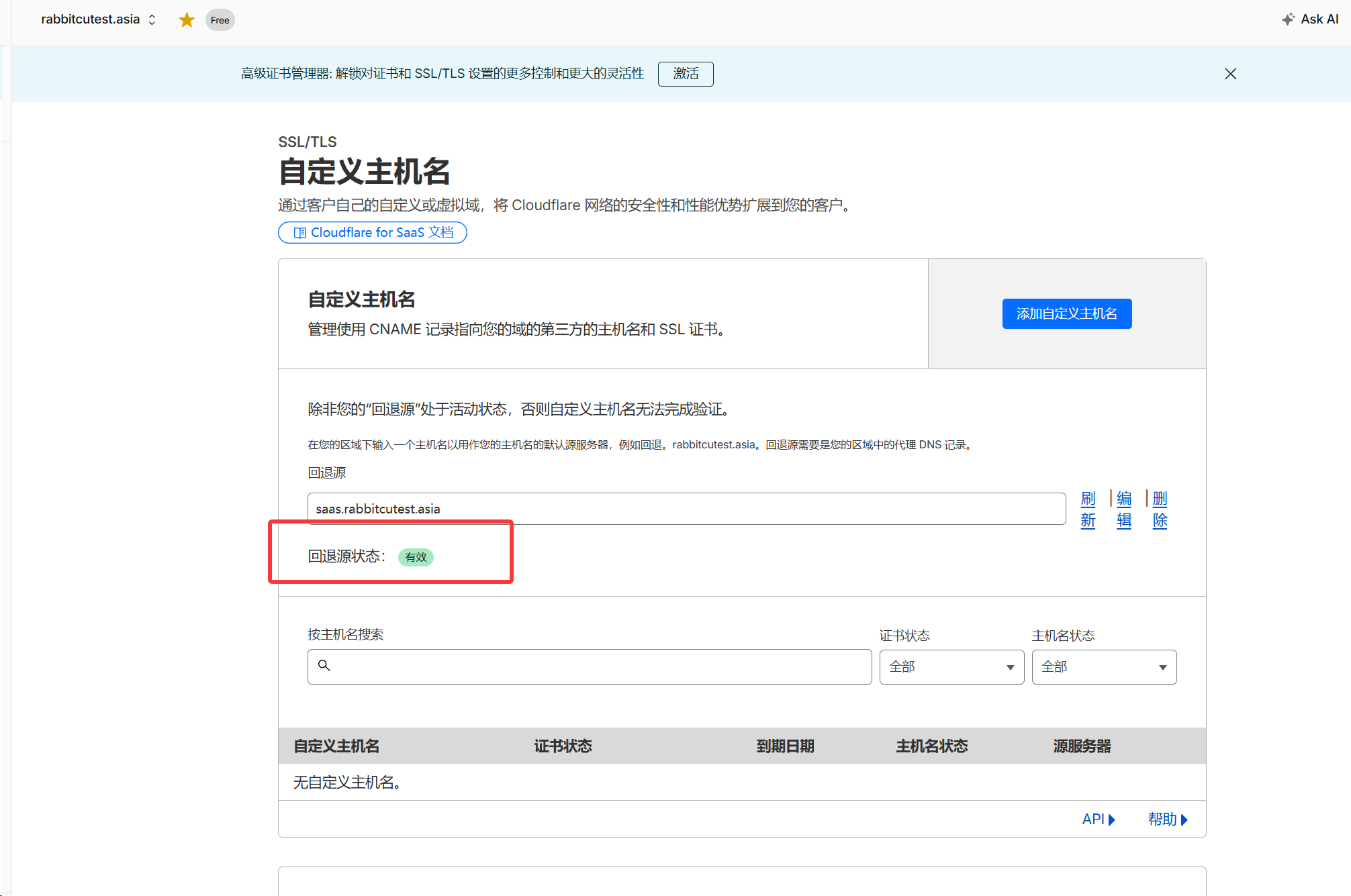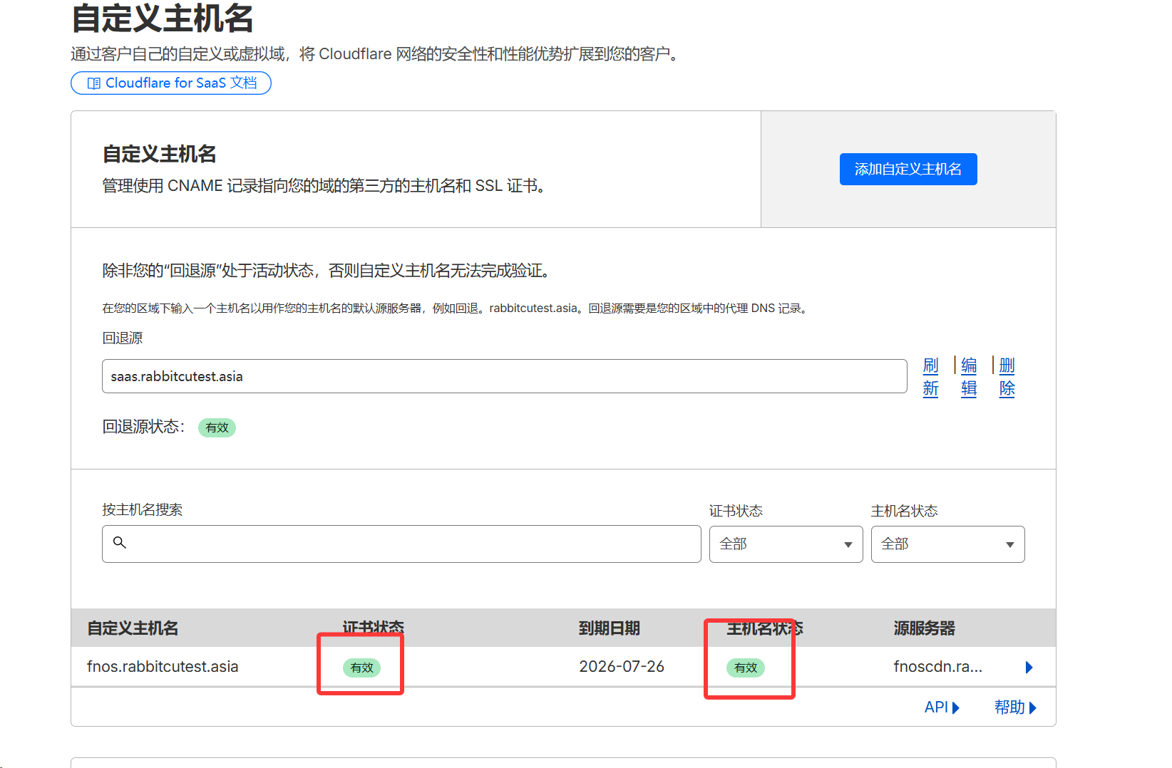 按添加自定义主机名后添加成功,并且等待一段时间,会看到两个有效